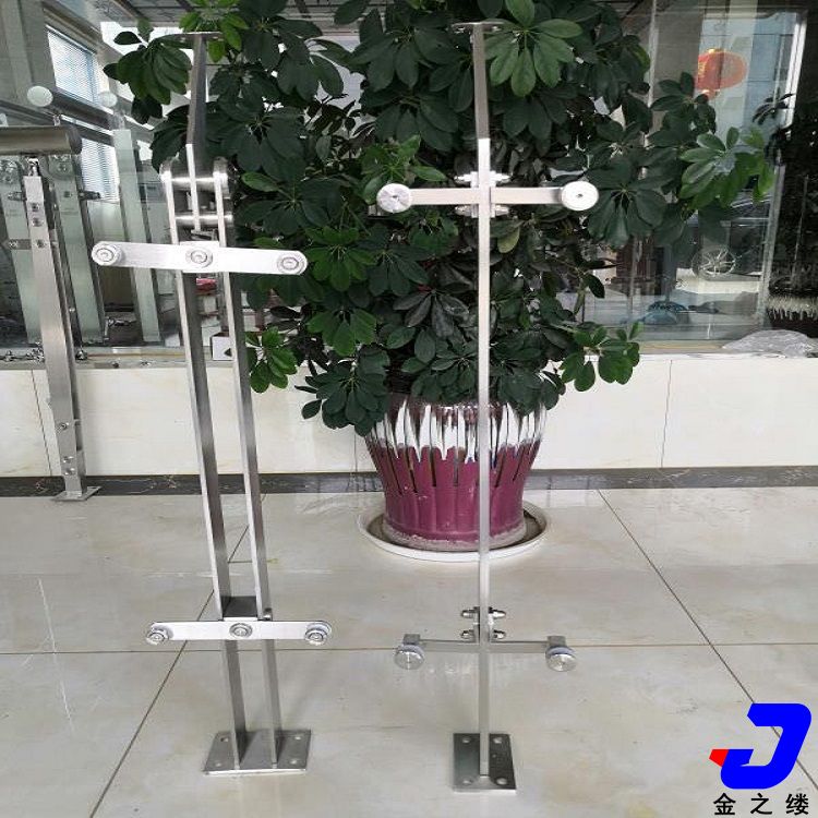 不銹鋼掛玻璃立柱。使用不銹鋼玻璃掛件、不銹鋼玻璃夾對玻璃進行固定,一般夾8mm ~ 12mm的單片鋼化玻璃。或者夾膠鋼化玻璃,尺寸視圖紙而定。